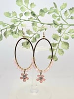 Cherry blossom enamel & rhinestone charm, light pink by bicone glass beads wire wrapped metal oval.