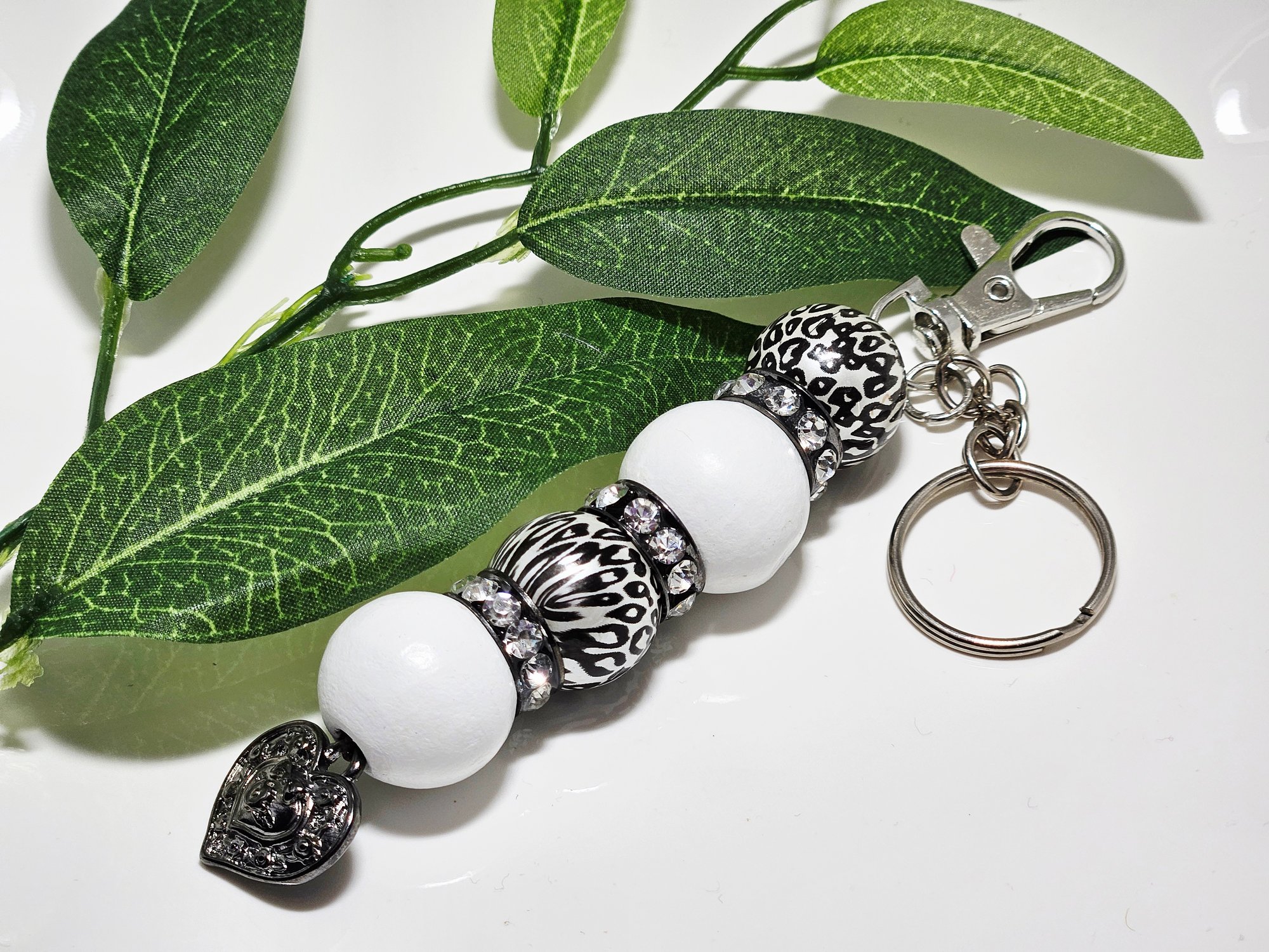 Wooden beads with metal rinestone and metal charms.