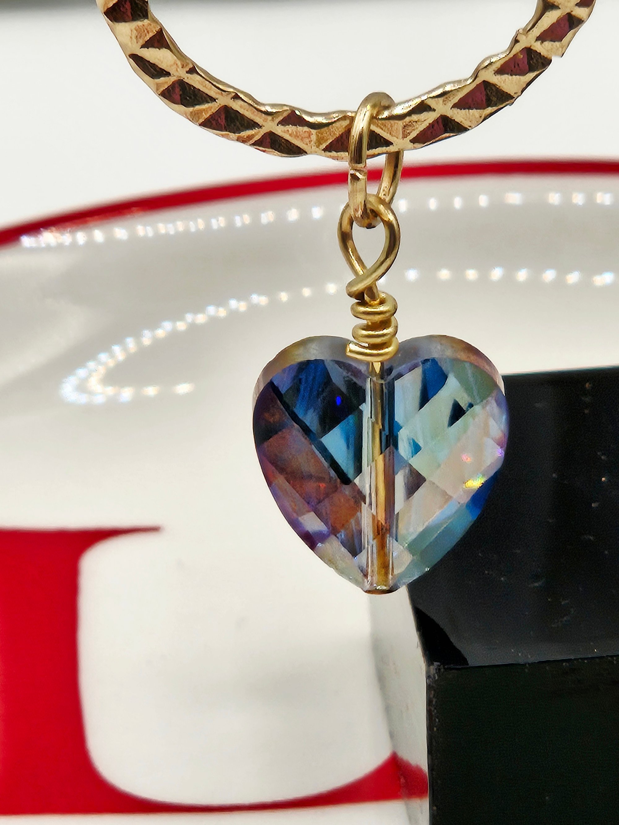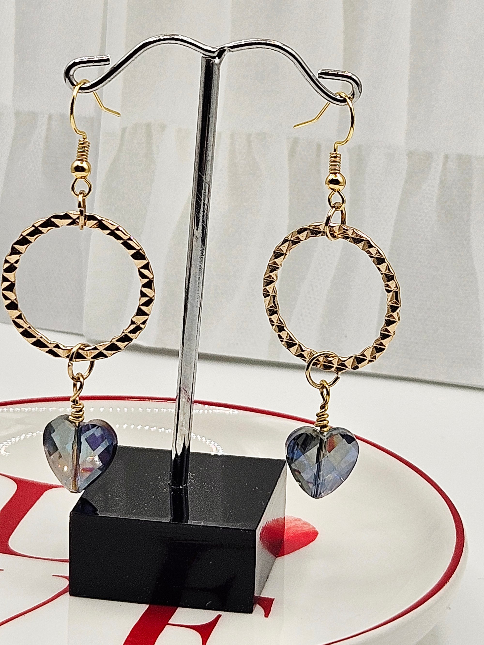Metal hoop with a glass heart bead